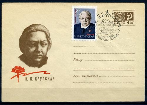 ХМК с маркой и СГ. СССР 1969 г. 100 лет со ДР Н.К. Крупской. КО.
