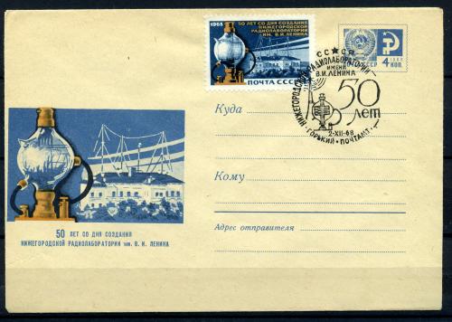 ХМК с маркой и СГ. СССР 1968 г. 50 лет Нижегородской радиолаборатории им. В.И.Ленина. КО.