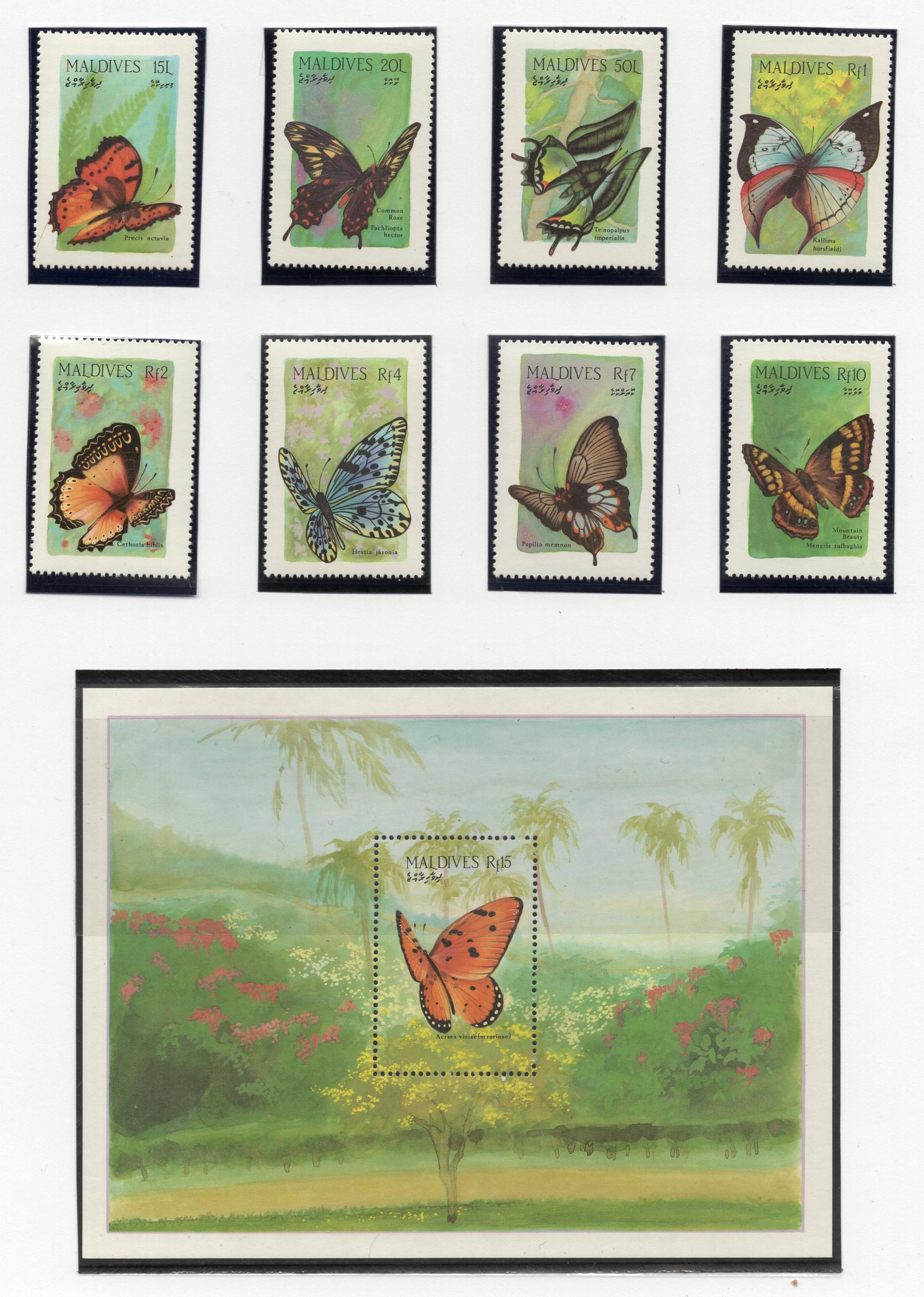 Почтовые марки. Мальдивы, 1987 г. Бабочки. MiNr. 1269 - 1276, Бл. 137-138. (Mi 39.6 €)