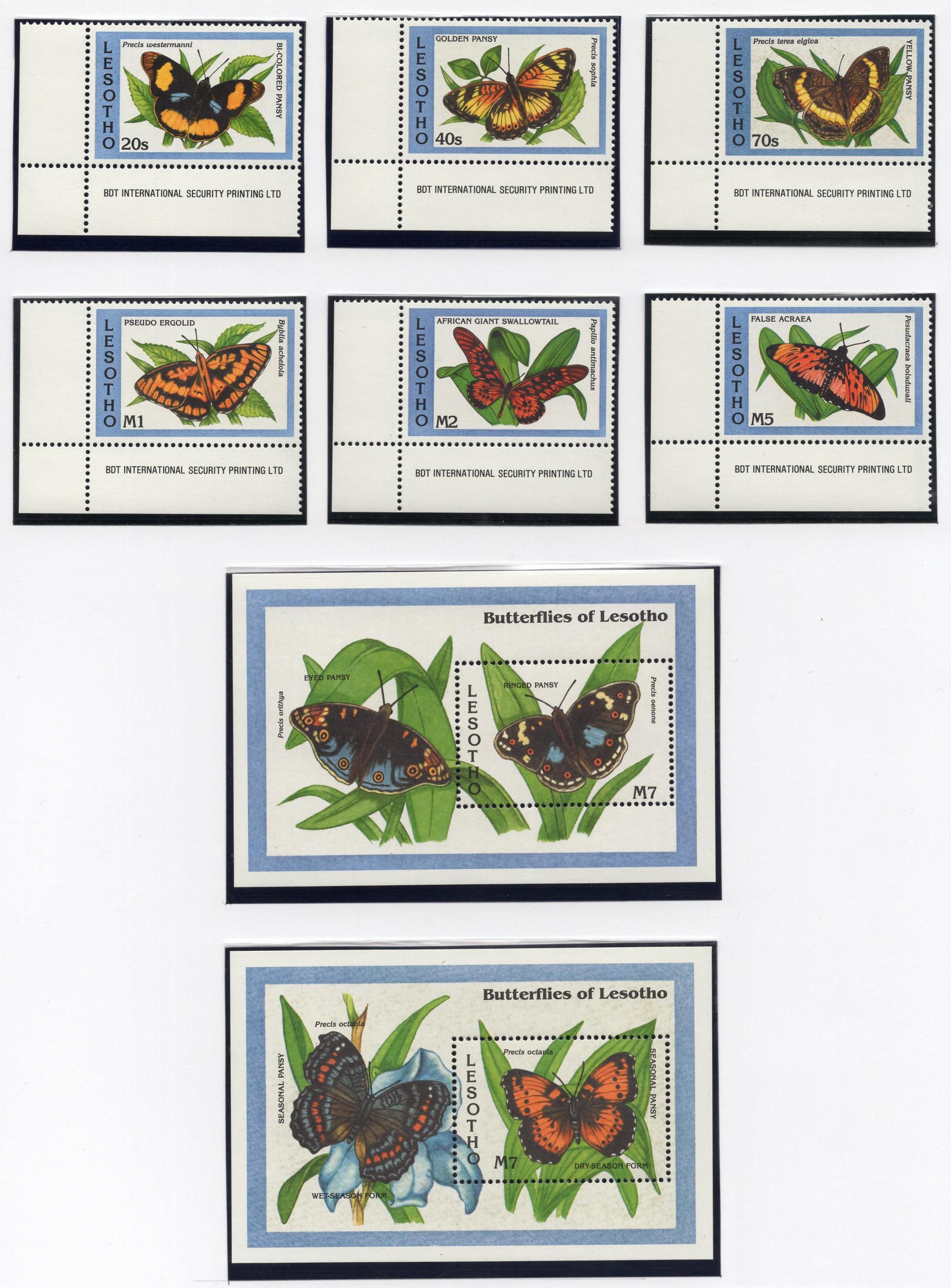 Почтовые марки. Лесото, 1993 г. Бабочки. №1038-1043. Бл. 102-103. (Mi 30.0 e)