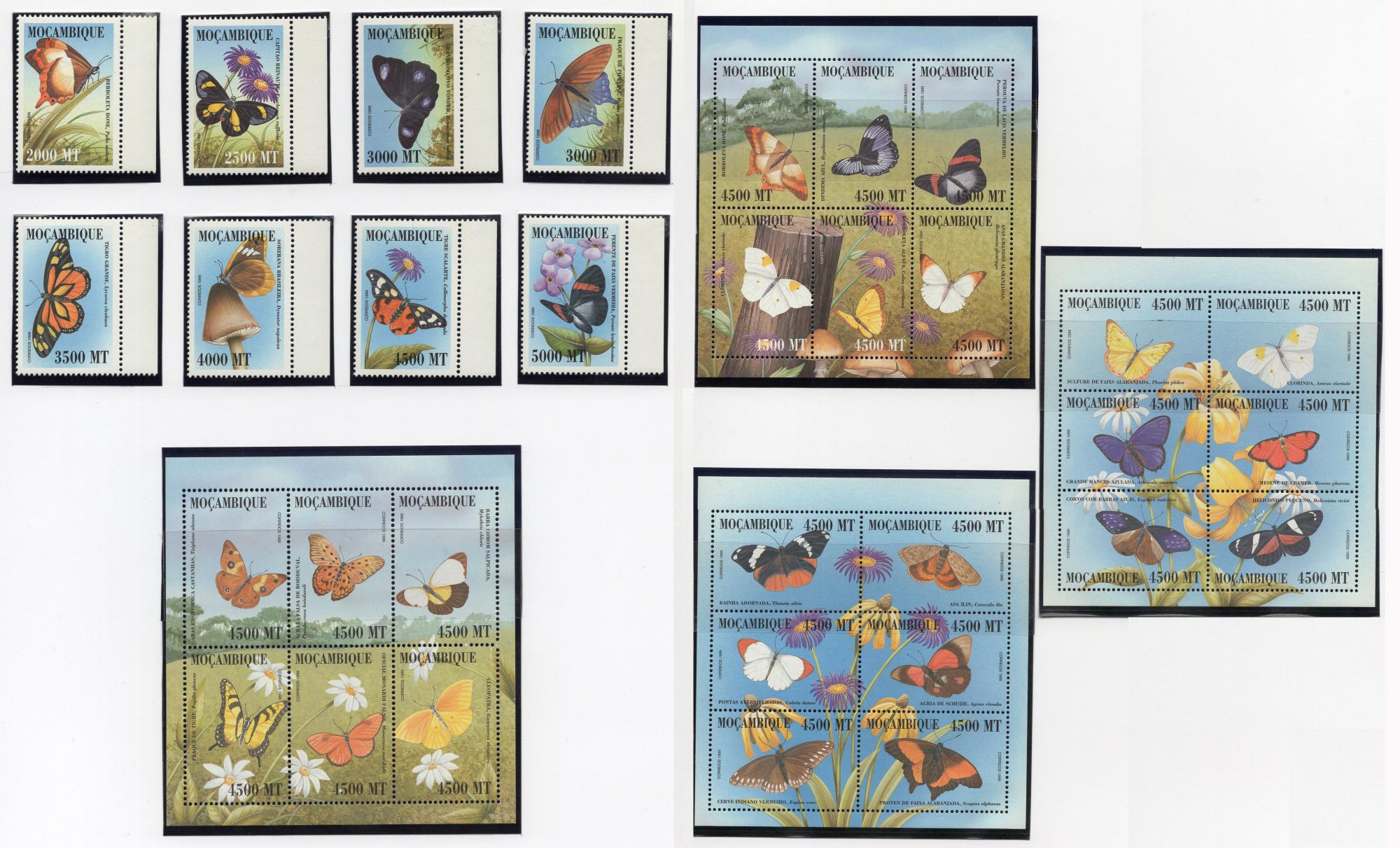 Почтовые марки. Мозамбик, 2000. Бабочки мира. MiNr. 1637 - 1668, Бл. 50-53. (Mi 50.0 €)