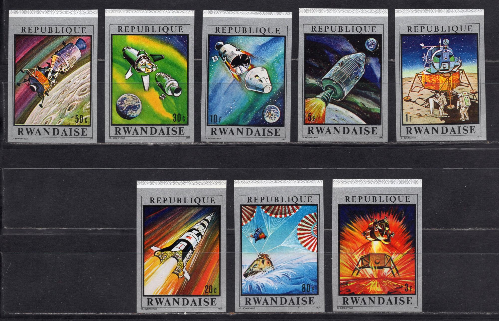 Почтовые марки. Руанда. 1970 г. № 414B-421B. Космос. Аполлон-13. Безз. (Mi 25.0 e)