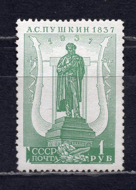 Почтовые марки. СССР, 1937 г. №541А. Пушкин. (Зубц. 14: 12,5) (5000 руб.) Прим.: новый клей.
