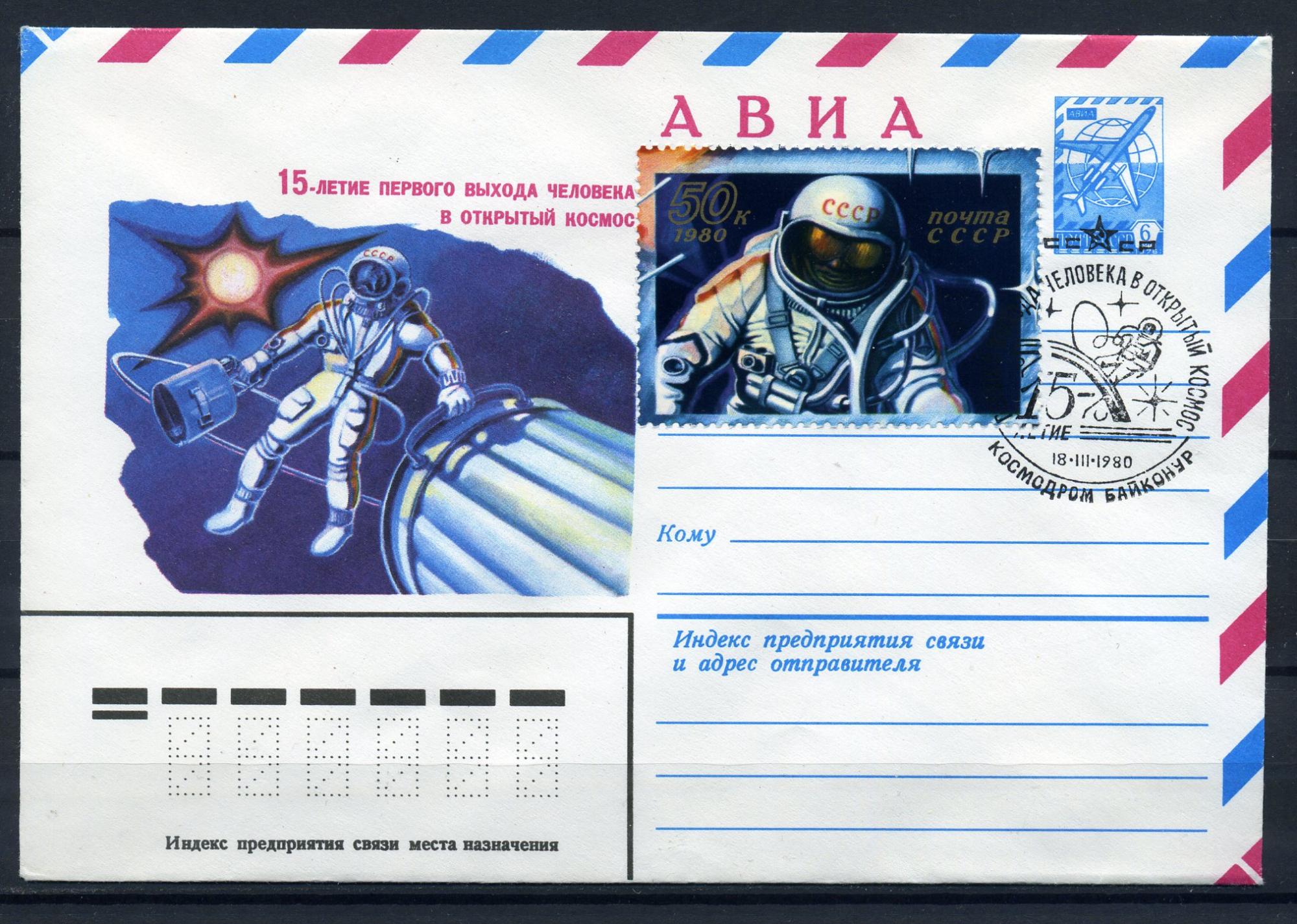 ХМК АВИА с маркой и СГ. СССР 1980 г. 15-летие первого выхода человека в космос. КО.