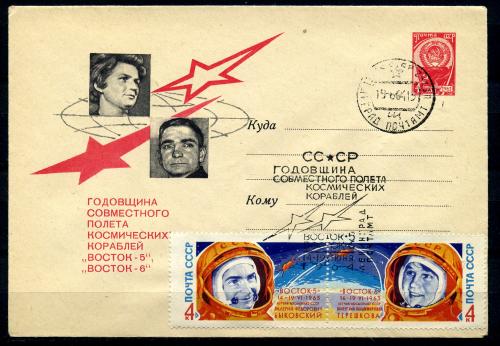 ХМК с марками и СГ. СССР 1964 г. Годовщина полета космических кораблаей "Восток-5" и "Восток-6". КО.