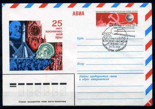 Конверт с ОМ АВИА со СГ. СССР 1982 г. 25 лет космической эры. КО.