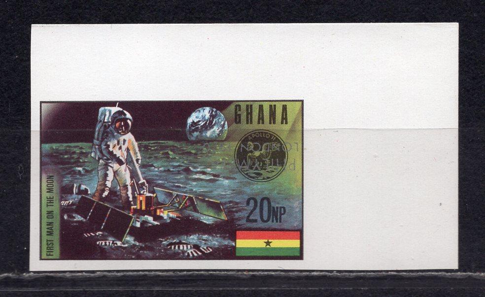 Почтовые марки. Гана, 1970 г. №407В. Филвыст. Космос. Надпечат. Перев! RARE. Безз.
