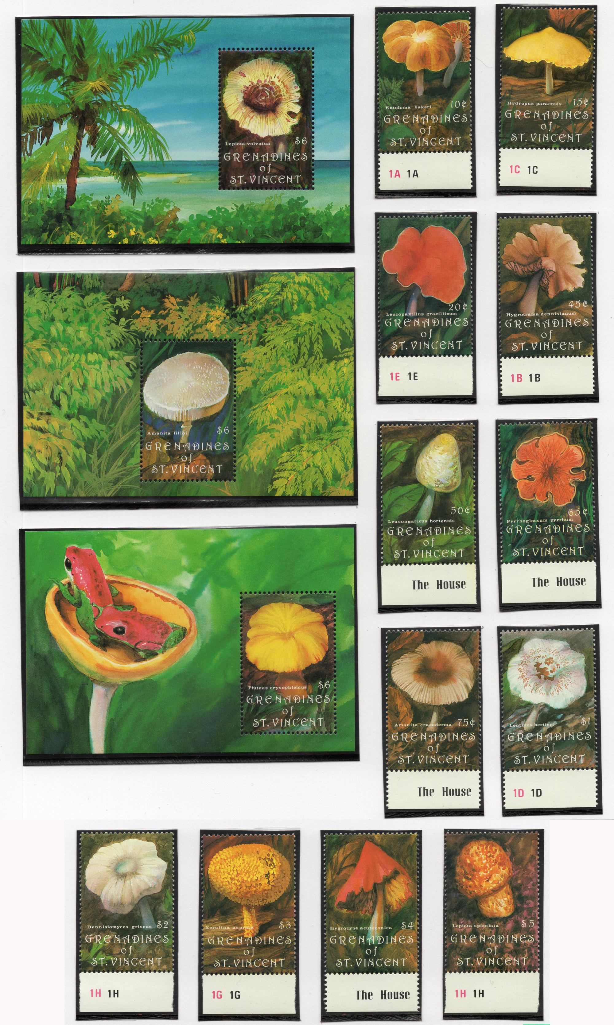 Почтовые марки. Сент-винсент и Гренадины, 1992 г. Грибы. Лягушки. №915-926. Бл. 105-107. (Mi 47.50 e)
