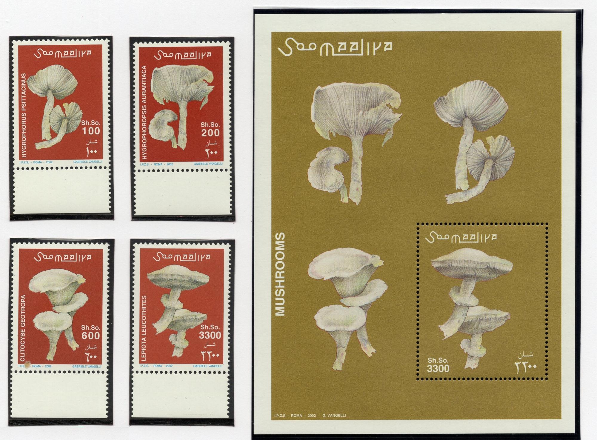 Почтовые марки. Сомали, 2002 г. Грибы. №962-965. Бл. 94. (Mi 32.0 e)