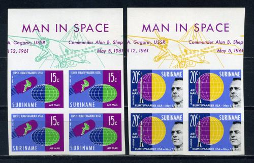 Почтовые марки. Суринам. 1961г. Космос. Гагарин. Шеппард. RARE! КБ №406-407В. БЕЗЗУБЦ.
