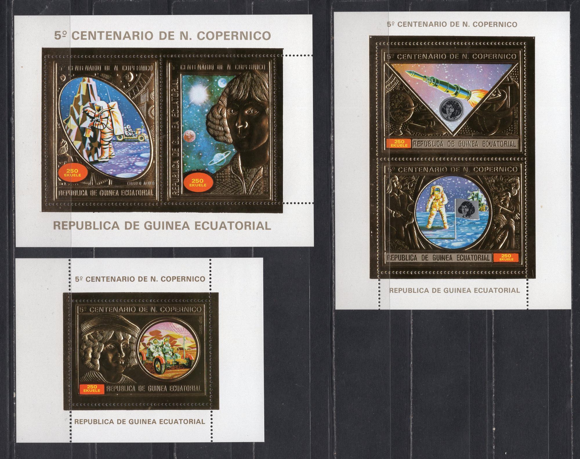 Почтовые марки. Экваториальная Гвинея. 1974г. Космос. Коперник. Фольга. Золото. Блок №102-104 (Mi: 75.00 Евро).