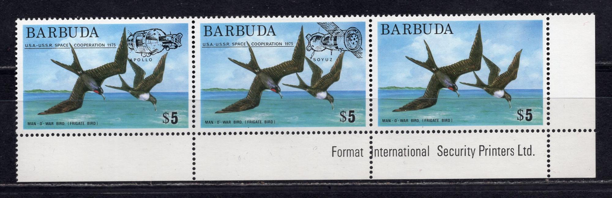 Почтовые марки. Барбуда. 1975г. Птицы. Надпечатка- Космос. Союз-Аполлон. №227-228 (Mi: 50.00 евро)
