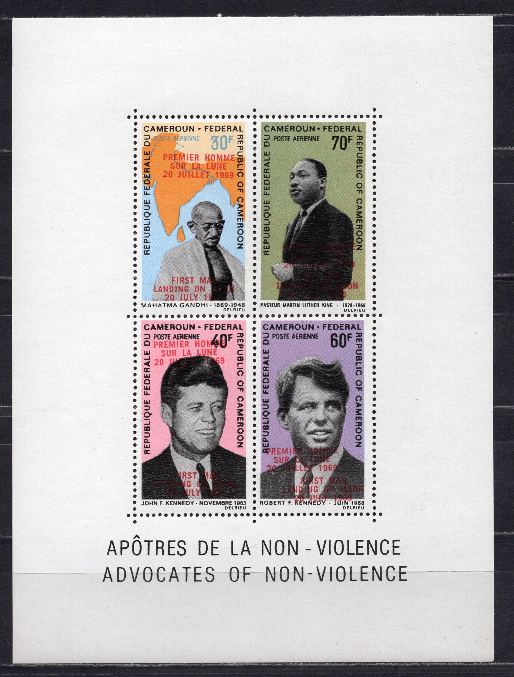 Почтовые марки. Камерун. 1969г. Космос. Надпечатка. Ганди. Кеннеди. Блок №7. (Mi: 280.00 Евро !)