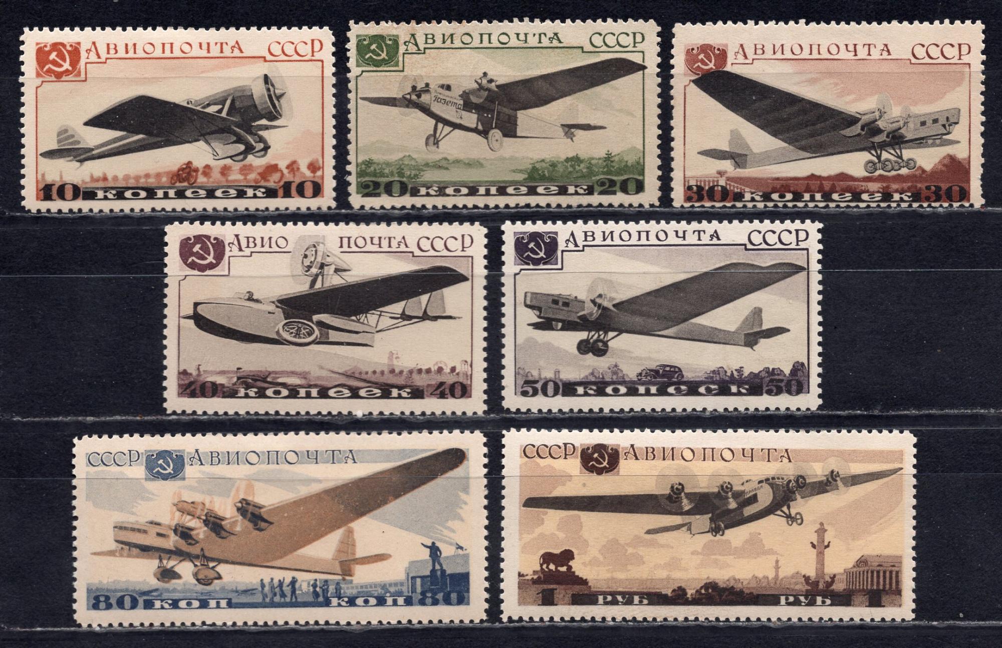Почтовые марки. СССР, 1937 г. Самолёты. №560-566. (6500 руб.)