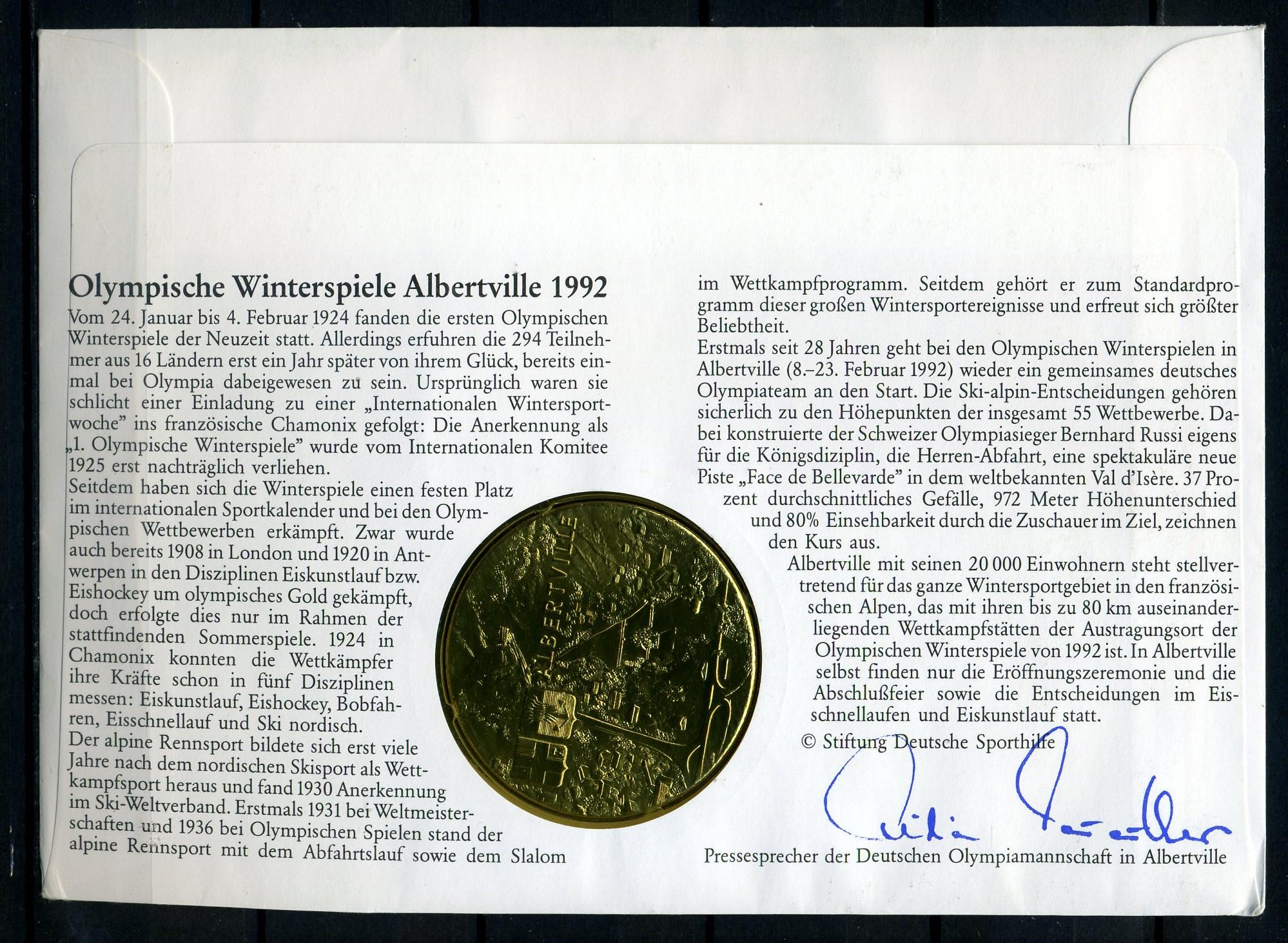 КПД с медалью и СГ. Германия 1992 г. Олимпийские игры в Альбервиле 1992г. С автографом.