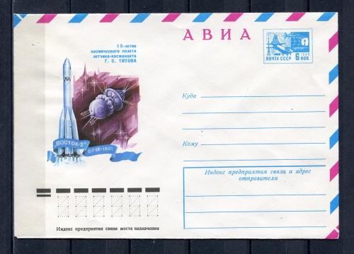 ХМК АВИА. СССР 1973 г. 15-летие космического полета Г.С. Титова. КО.