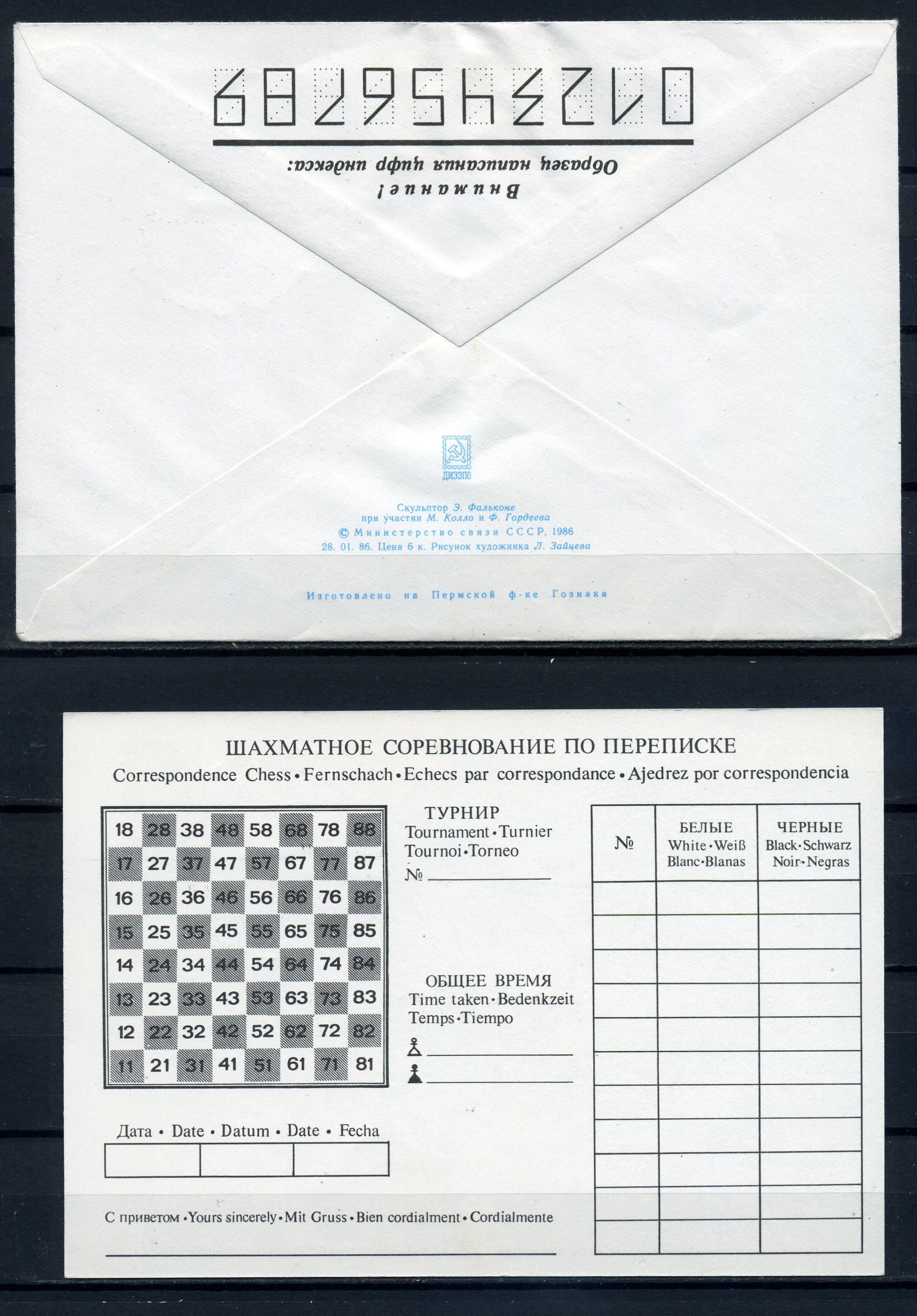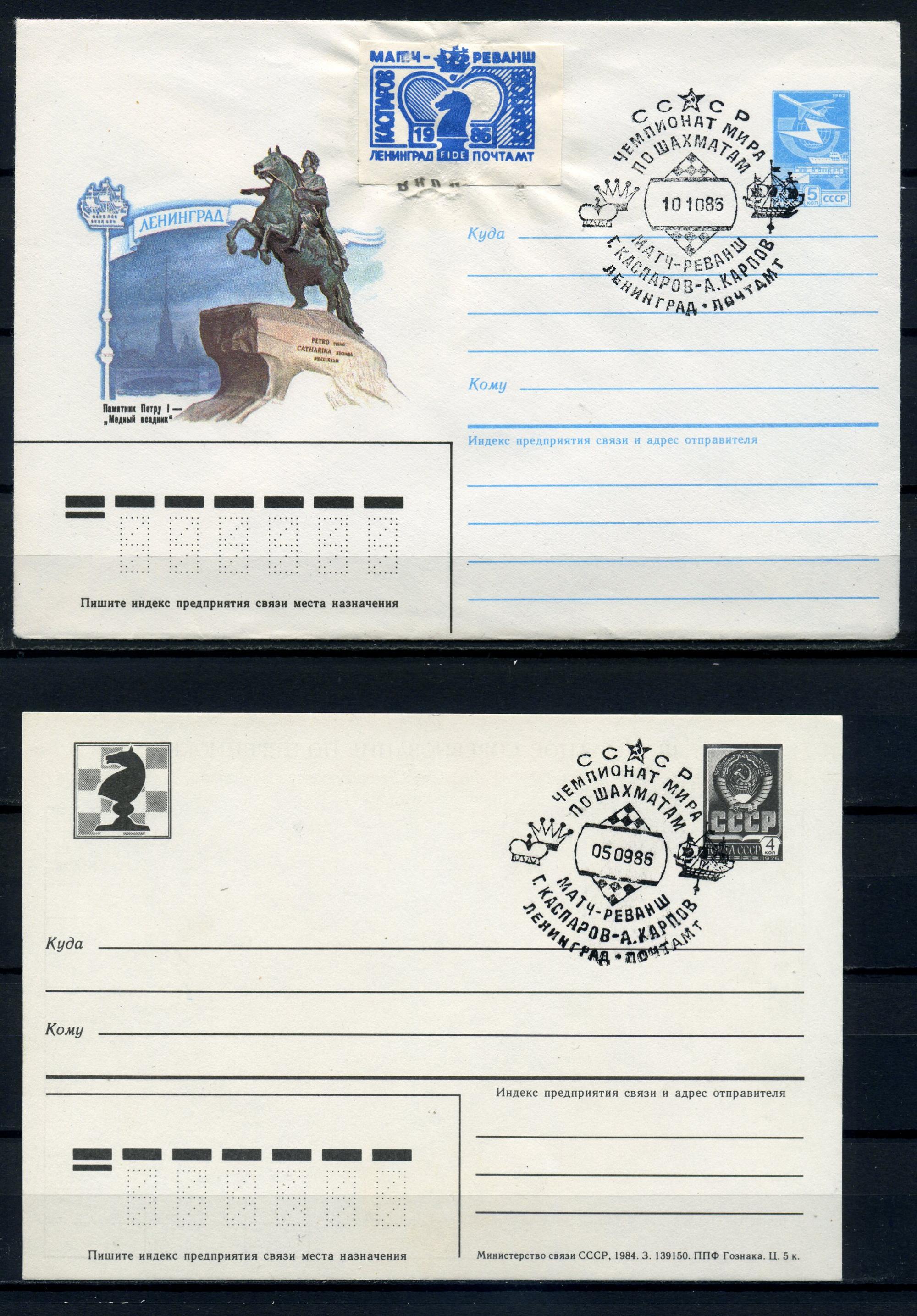 ХМК с карточкой и СГ. СССР 1986 г. ЧМ по шахматам. Матч-реванш. Г.Каспаров-А.Карпов.