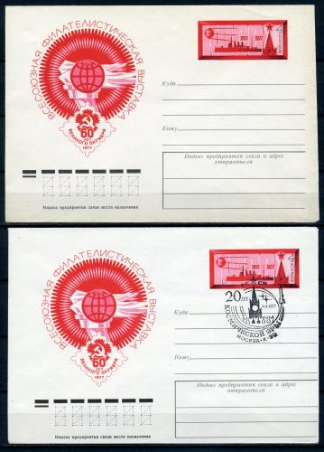 Конверты с ОМ. Чист. + СГ. СССР 1977г. Всесоюзная фил.выставка 60 лет Октября. СГ - 20 лет космической эры. КО.