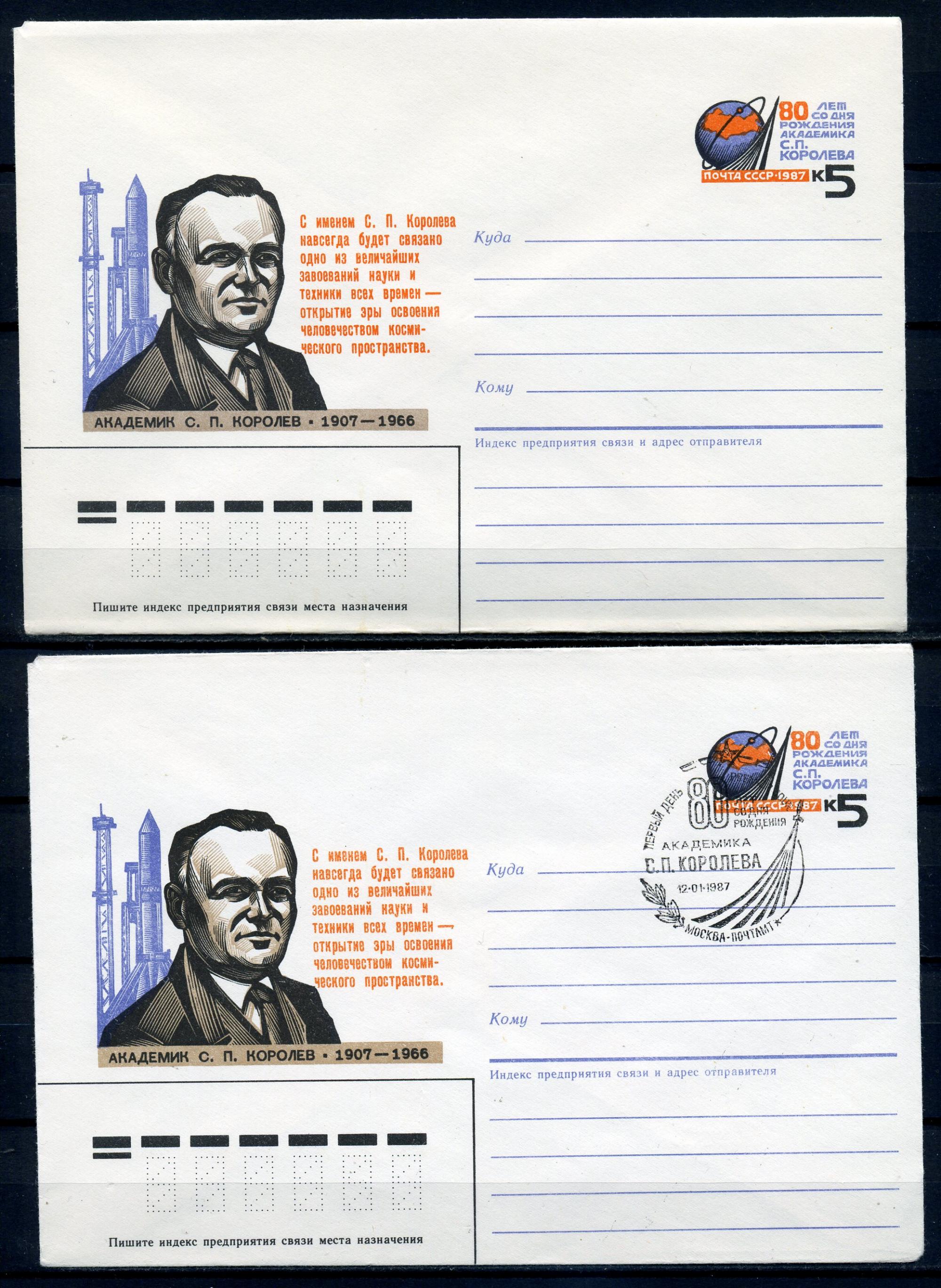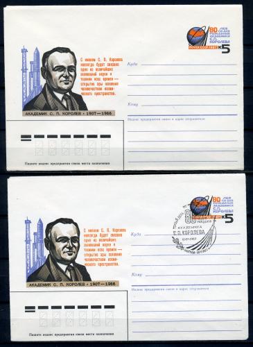 Конверты с ОМ. Чист. + СГ. СССР 1987г. 80 лет со ДР С.П. Королева. КО.