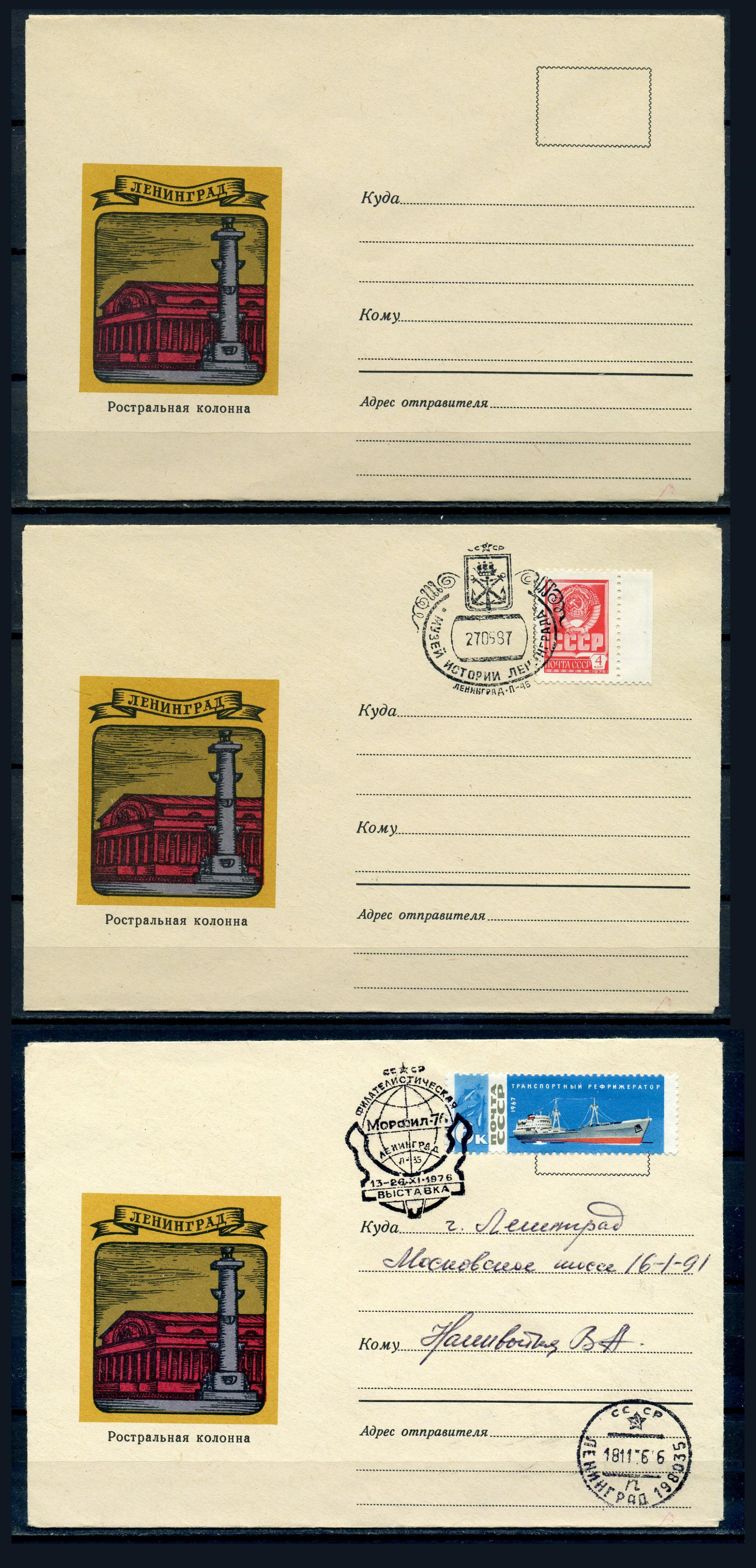 Немаркированные конверты. СССР 1970 г. Чист.-Ленинград. Ростральная колонна. КО.