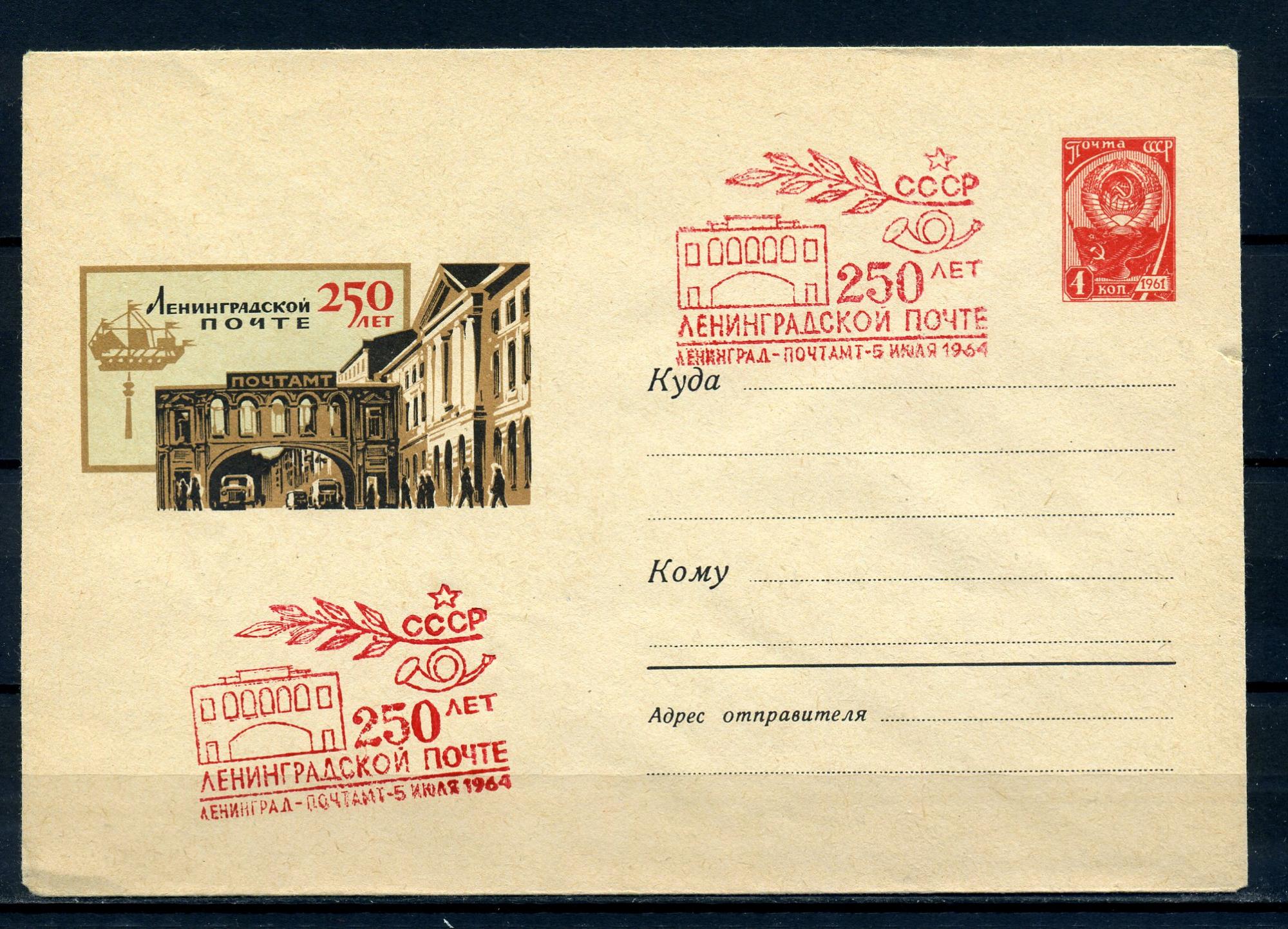 ХМК со СГ. СССР 1964 г. 250 лет Ленинградской почте. КО.