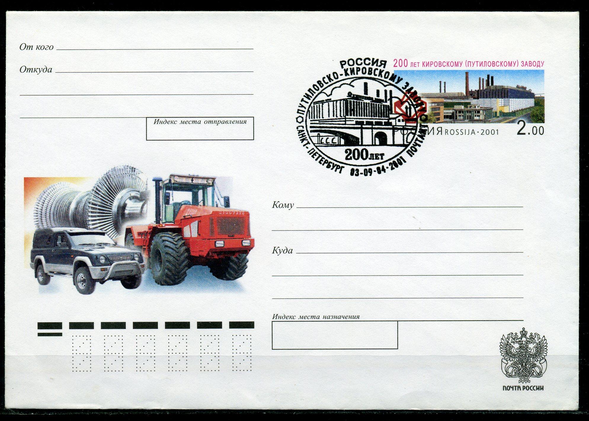 Конверт с ОМ и СГ. Россия 2001 г. 200 лет Путиловско-Кировскому заводу. КО.