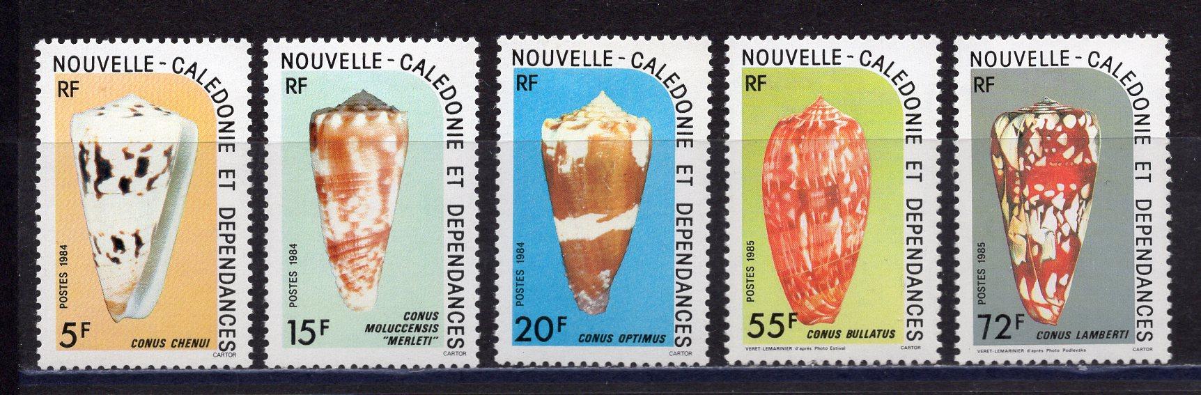 Почтовые марки. Новая Каледония. 1984-1985г. Ракушки. №757-758, №728-730.