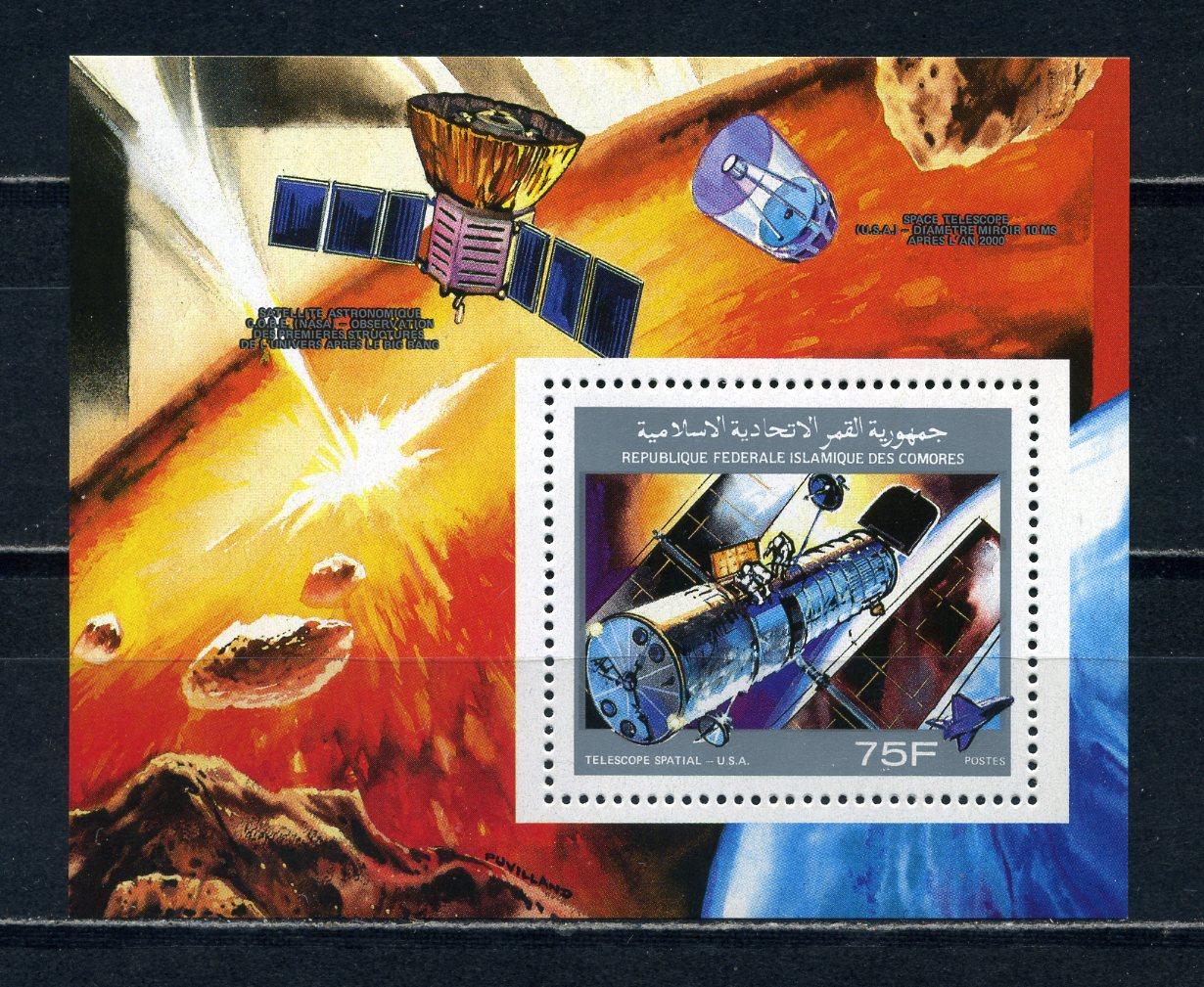 Почтовые марки. Коморы. 1990г. Космос. Спутники. Блок №326А.