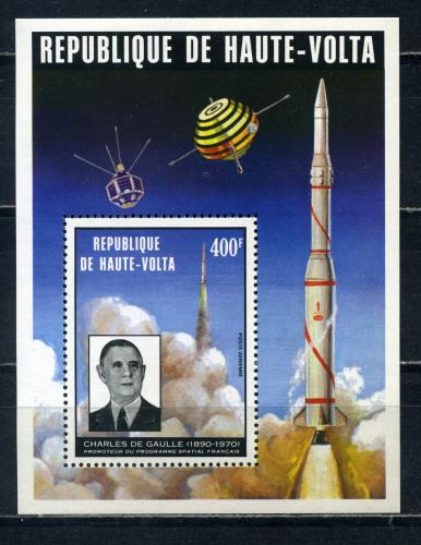 Почтовые марки. Верхняя Вольта. 1974г. Шарль де Голль. Космос. Блок №23.