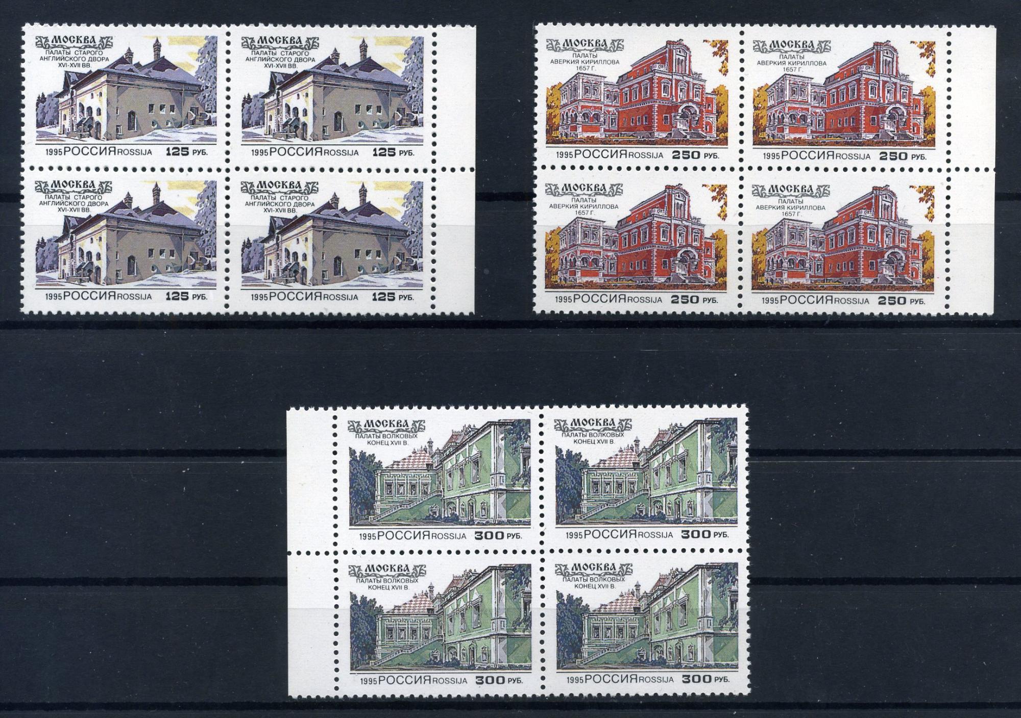 Почтовые марки. Россия. 1995г. Гражданская архитектура Москвы 16-17 веков. №196-198. КБ.