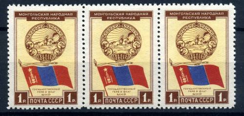 Почтовые марки. СССР 1951 г. Государственный герб и флаг МНР. №1606. СЦ.
