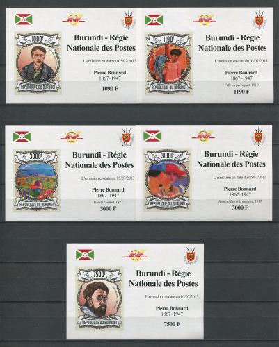 Почтовые марки. Бурунди. 2013г. №3098в-3102в. Живопись. Люкс-блоки. Беззубц.