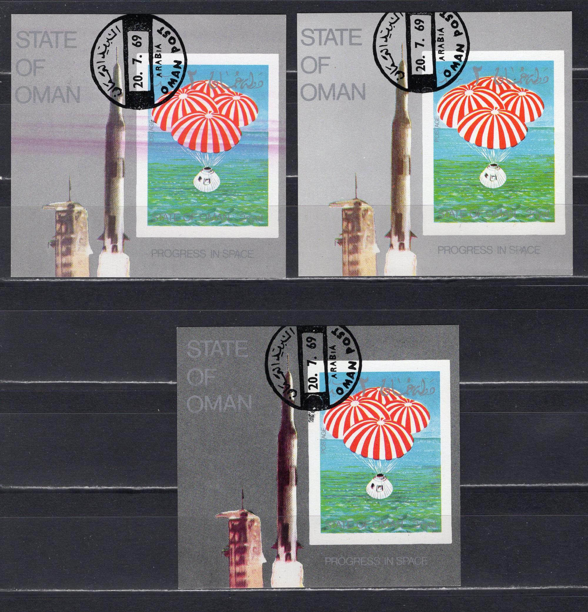Почтовые марки. Оман. 1969г. Космос. Аполло-11. Блоки беззубц. Цвет. №39. (кат.Weebau)