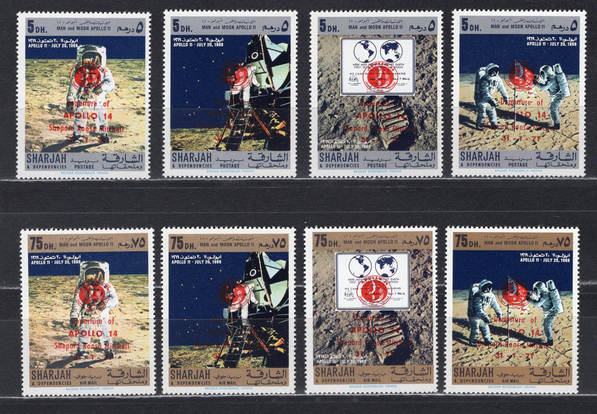 Почтовые марки. Шарджа. 1971г. Космос. Надпечатка. №1068-1071.1075-1078.