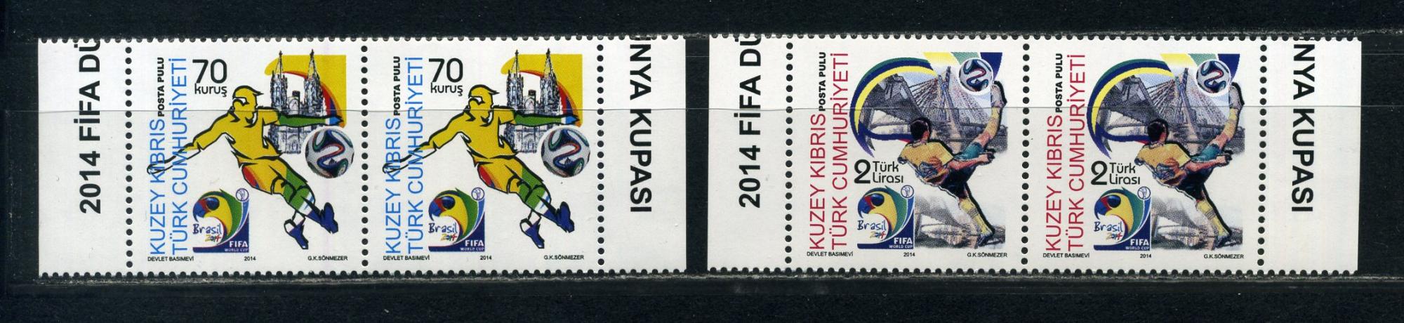 Почтовые марки. Тур. Кипр. 2014г. Футбол. №789-790. Сцепки.