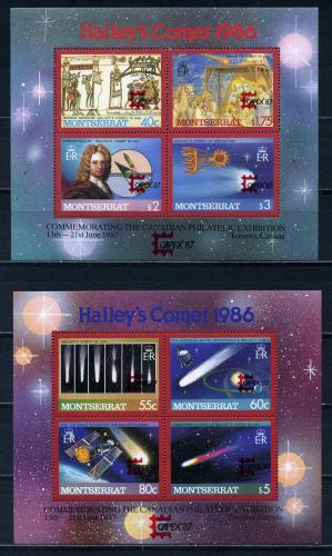 Почтовые марки. Монтсеррат. 1987г.Космос. Комета Галлея. Надпечатка. Блок №44-45.