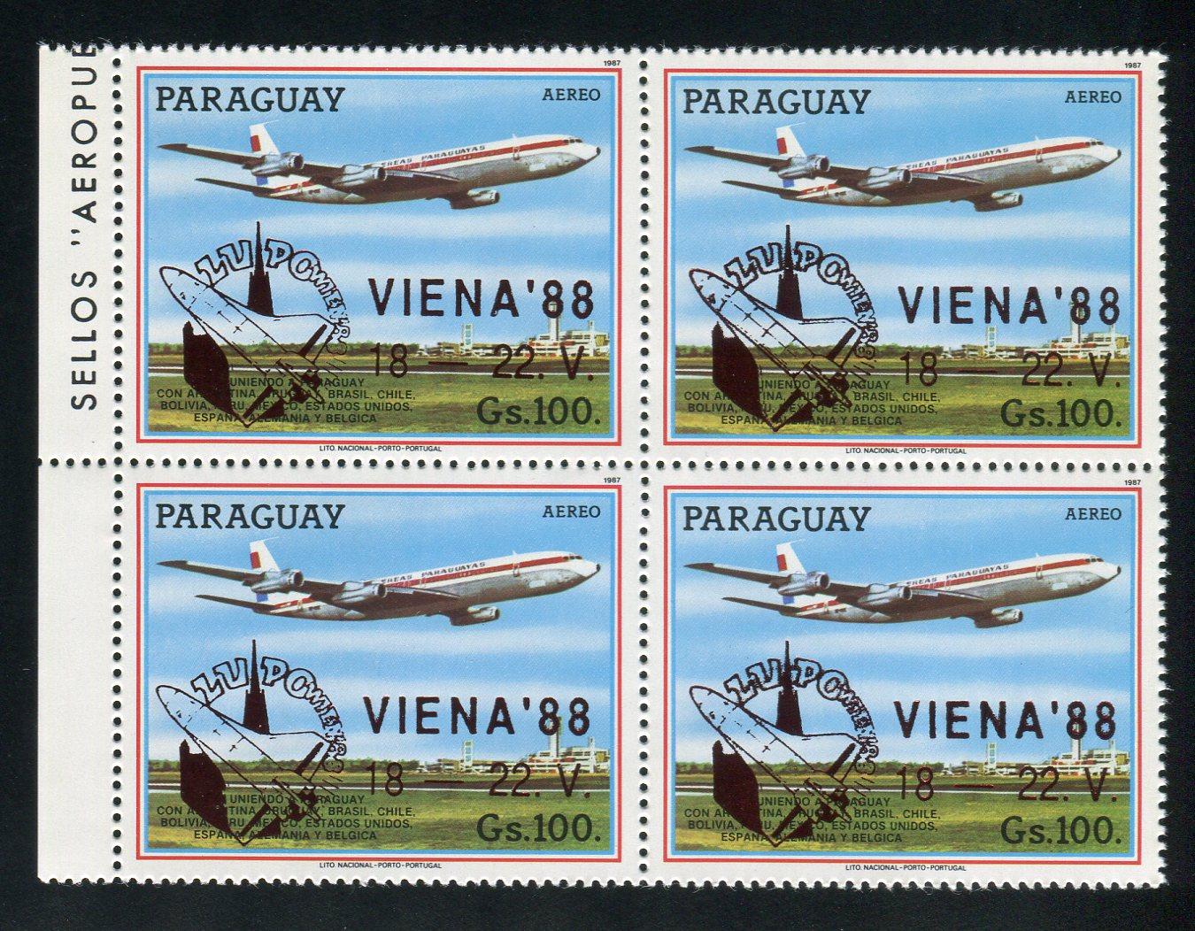 Почтовые марки. Парагвай. 1988г. Самолёт. Надпечатка красная. №4218. КБ.(Мi : 10.00 Евро)