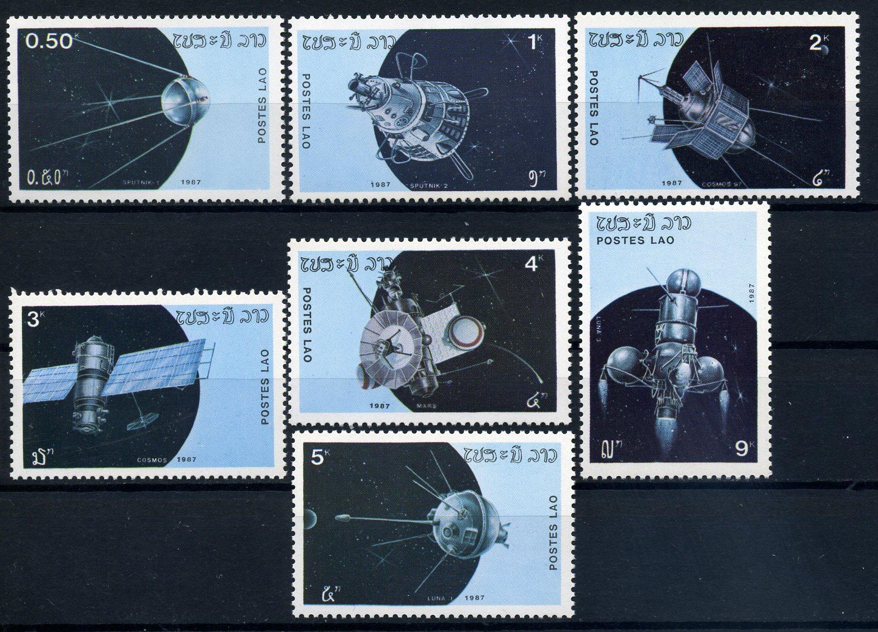 Почтовые марки. Лаос. 1987г. №988-994. Космос.