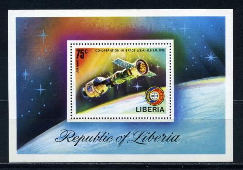 Почтовые марки. Либерия. 1975г. Космос. Союз-Аполлон. Блок №78.