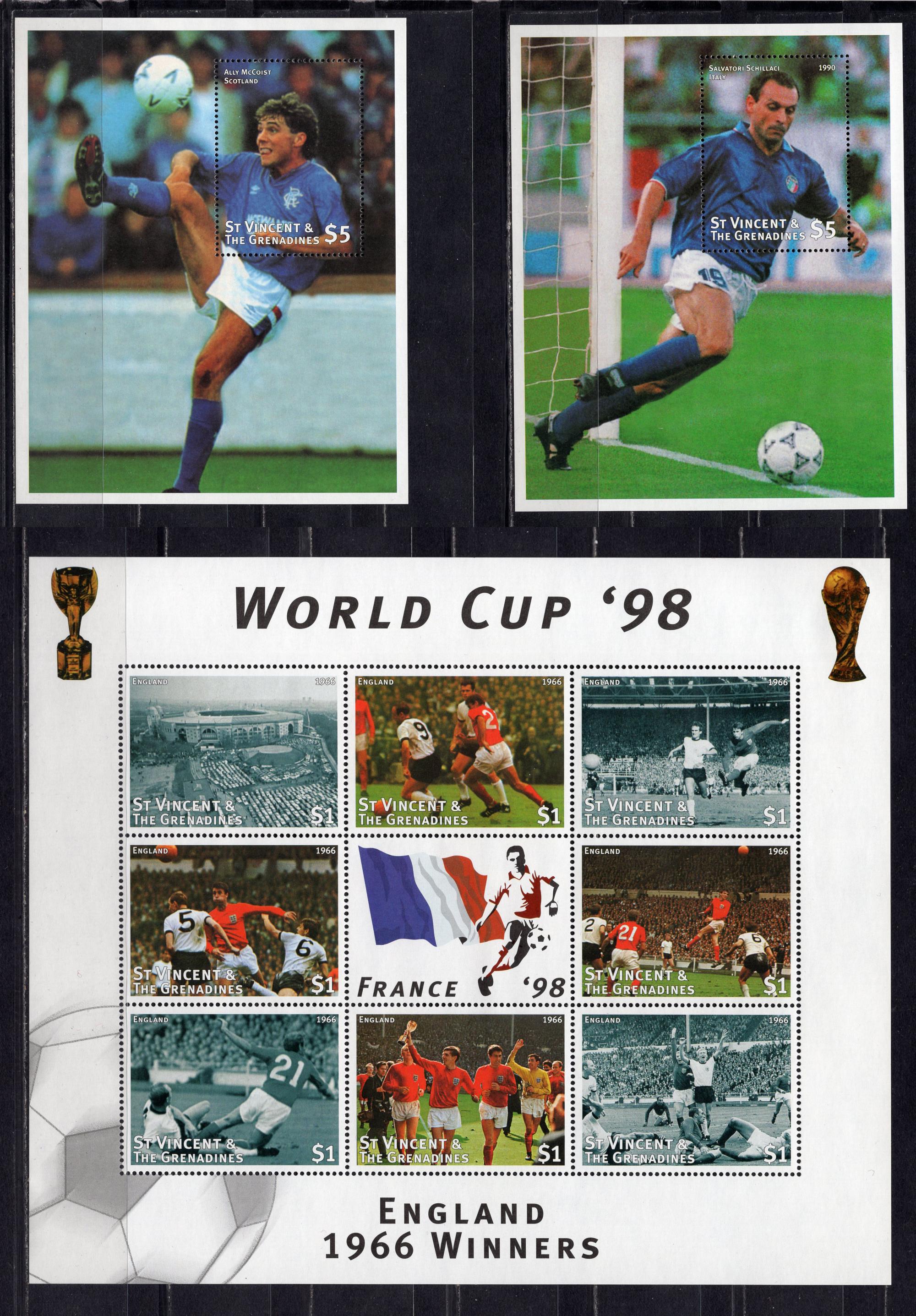 Почтовые марки. Сент-Винсент и Гренадины, 1997 г. Футбол. №4056-4063. Бл. 430, 431. (Mi 15.5 e)
