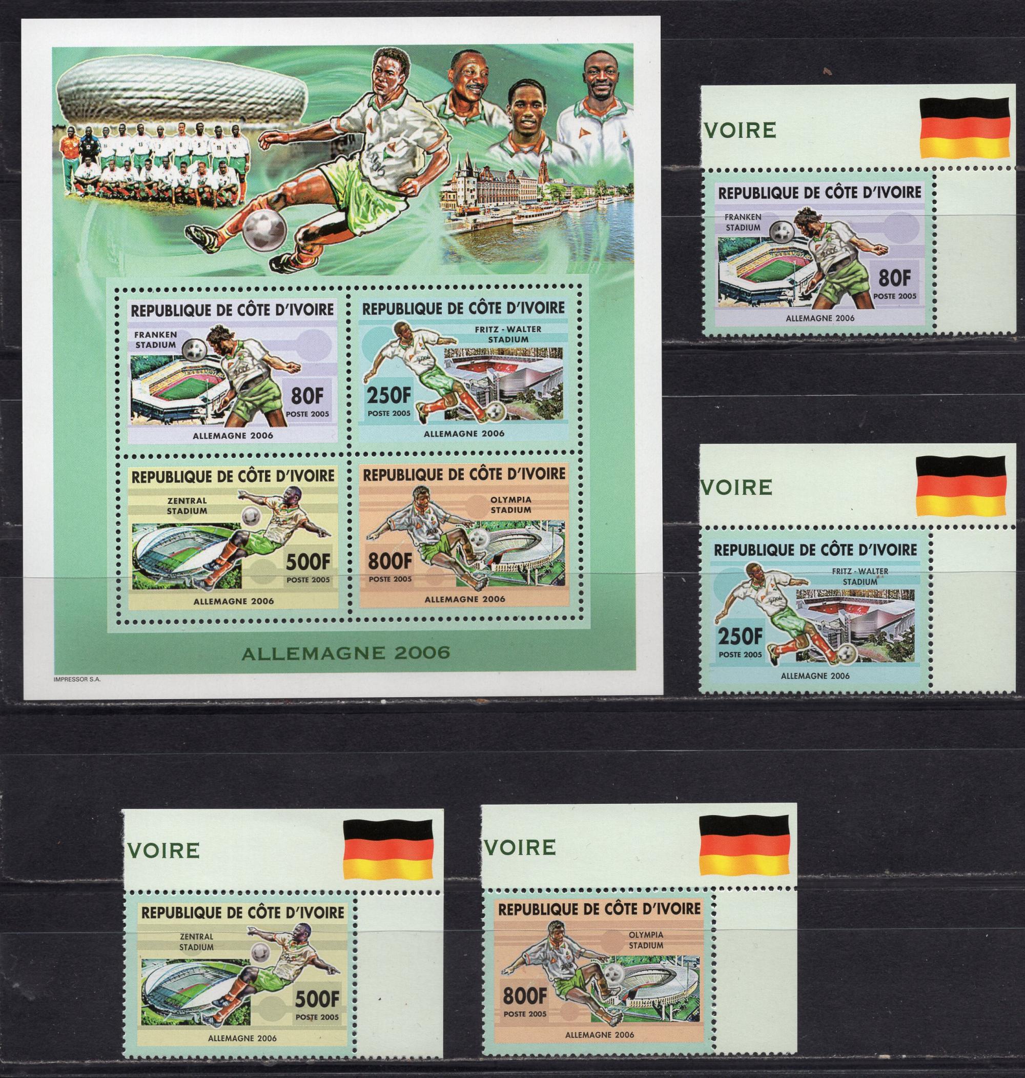 Почтовые марки. Кот-д-Ивуар, 2006 г. Футбол. №1442 II A - 1448 II A. Бл. 151