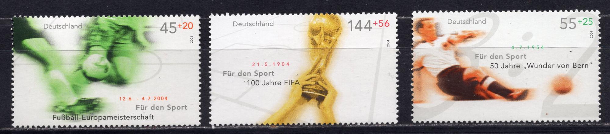 Почтовые марки. Германия, 2004 г. Футбол. №2382, 2385-86.