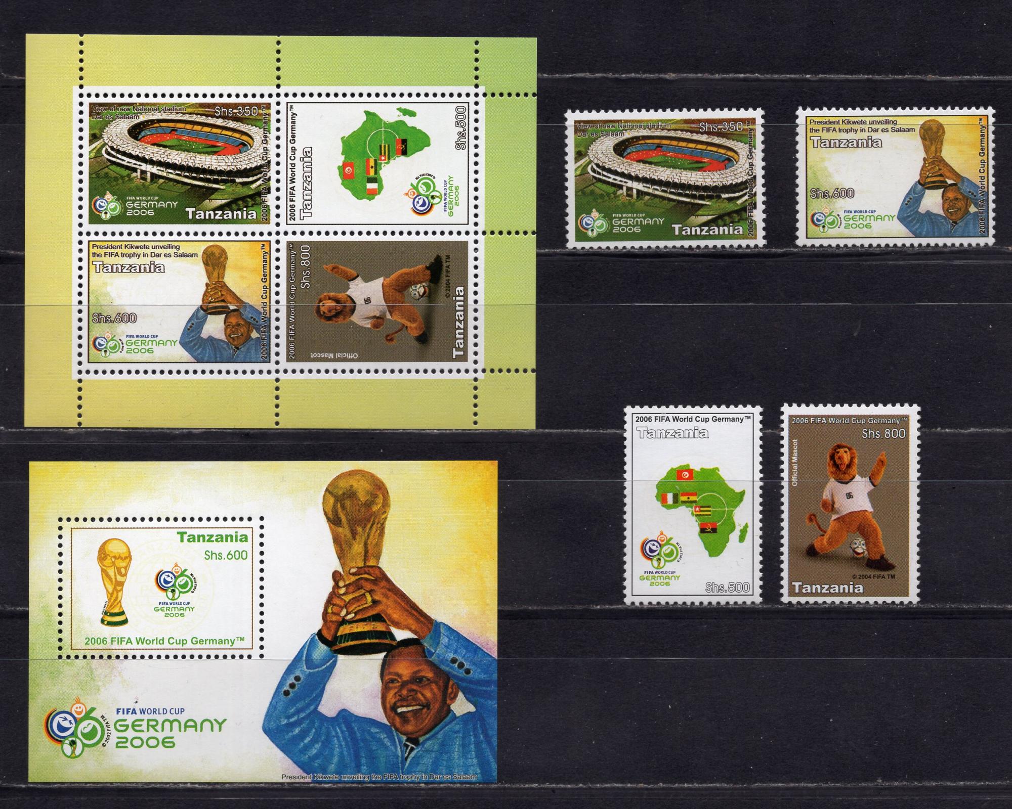 Почтовые марки. Танзания, 2006 г. Футбол. №4342-4345. Бл.587-588.