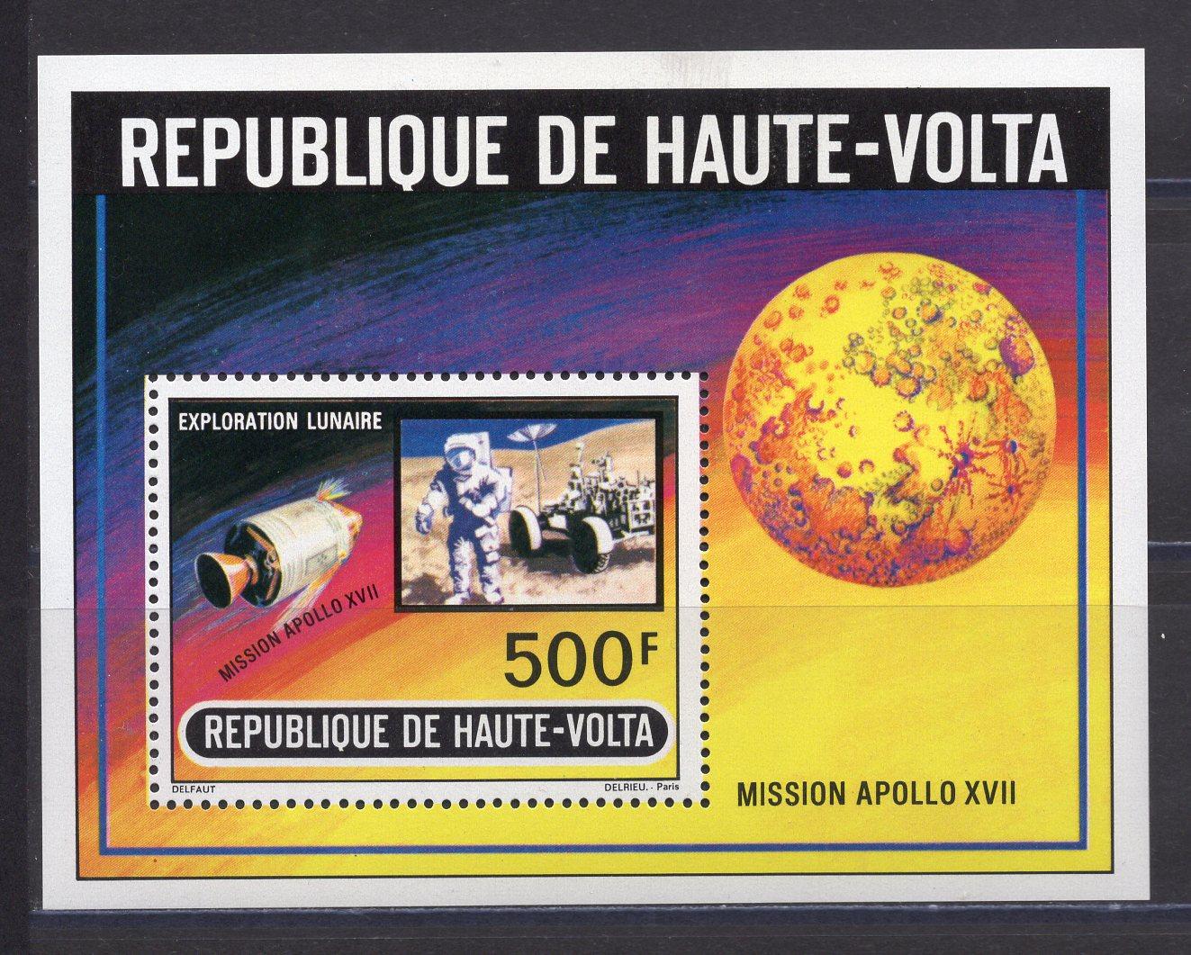 Почтовые марки. Верхняя Вольта. 1973г. Космос. Аполлон-17. Блок №10.