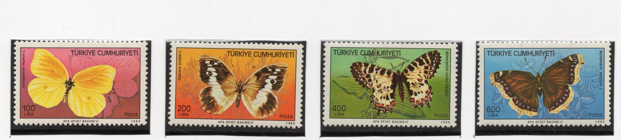 Почтовые марки. Турция, 1988 г. Бабочки. №2833-2836.(Mi 22.0 e)