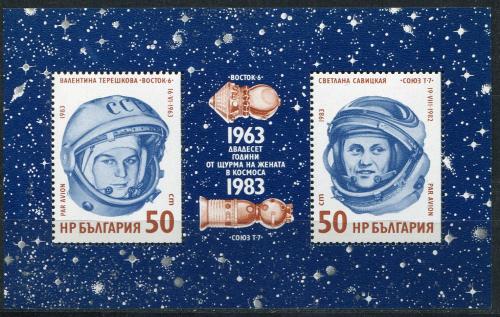 Почтовые марки. Болгария. 1983г. Терешкова и Савицкая. Блок №134.