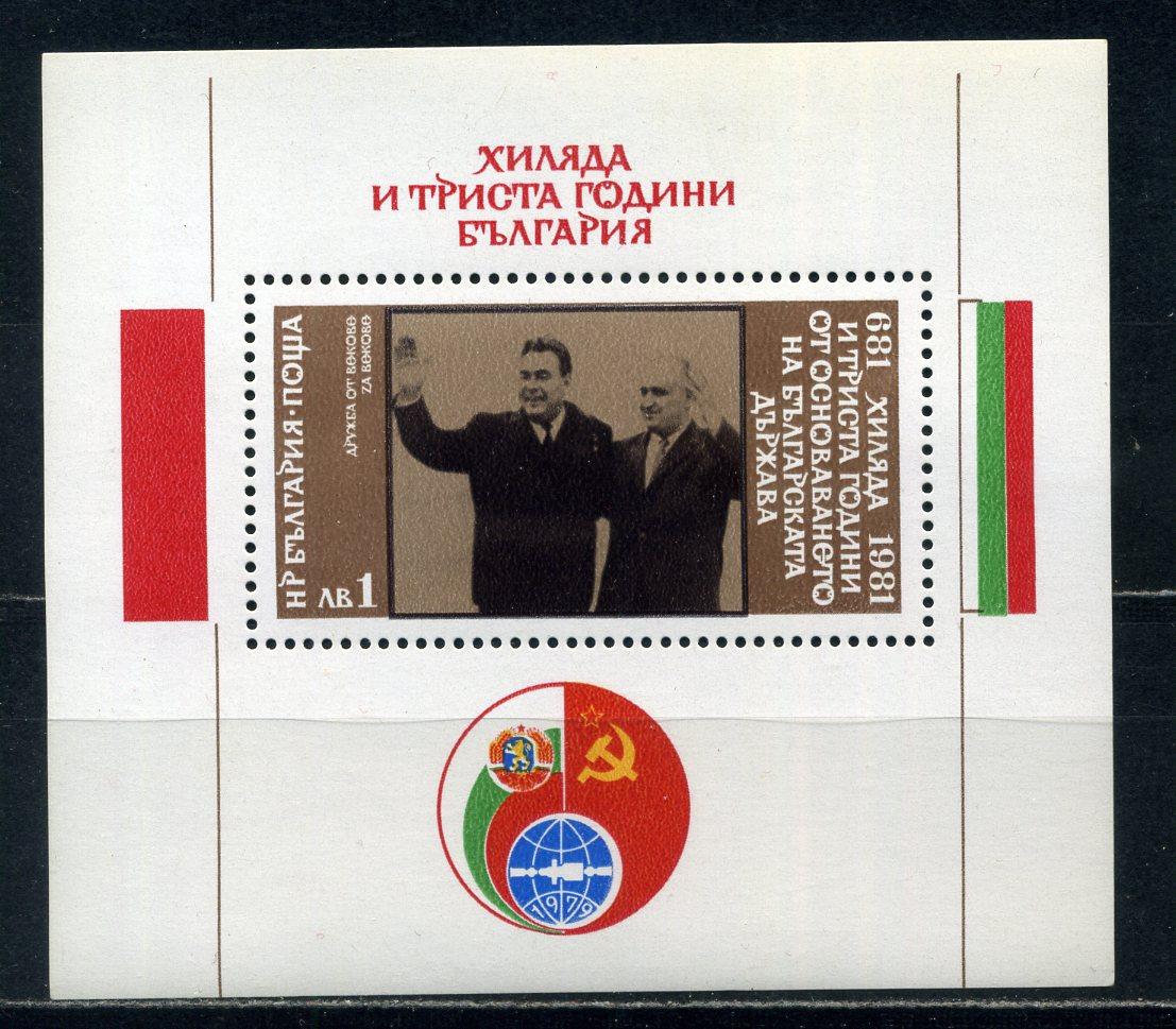 Почтовые марки. Болгария. 1981г. 1300-летие Болгарии. Дружба. Л.И.Брежнев. Блок №115.