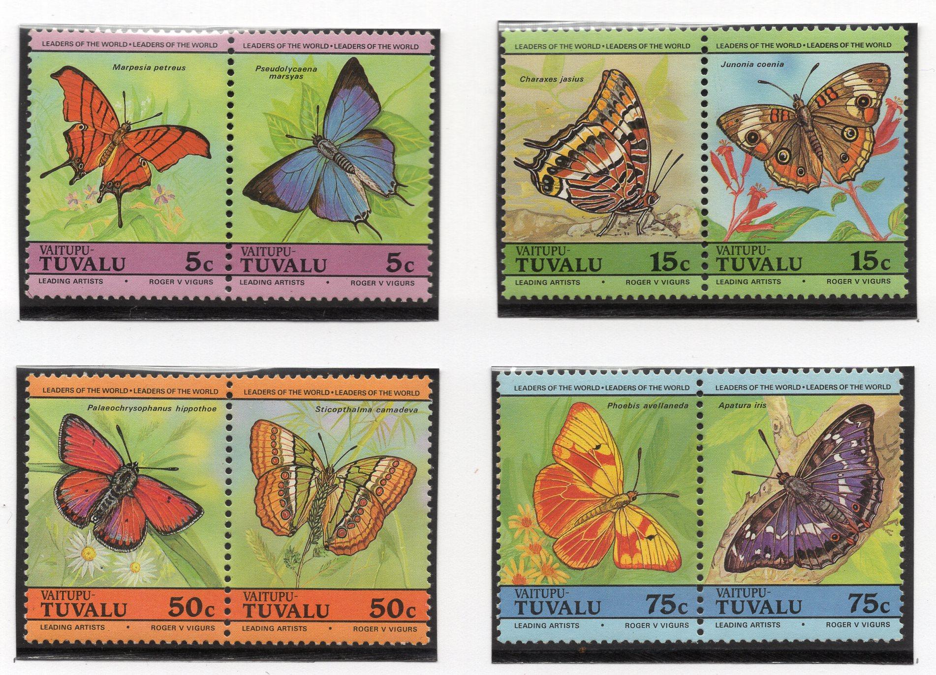 Почтовые марки. Тувалу, 1985 г. Бабочки. №45-52.