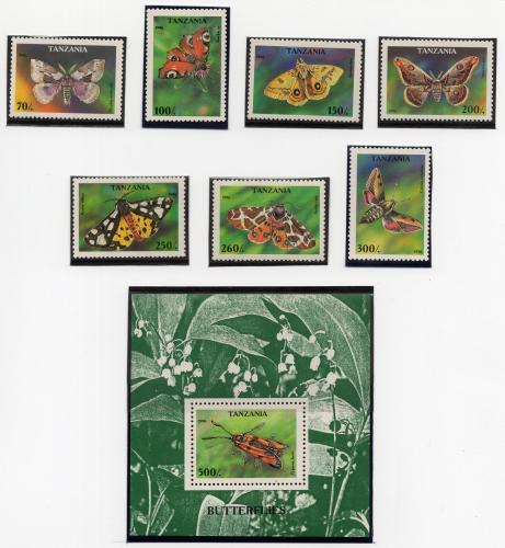 Почтовые марки. Танзания, 1996 г. Бабочки. №2256-2262. Бл. 311.