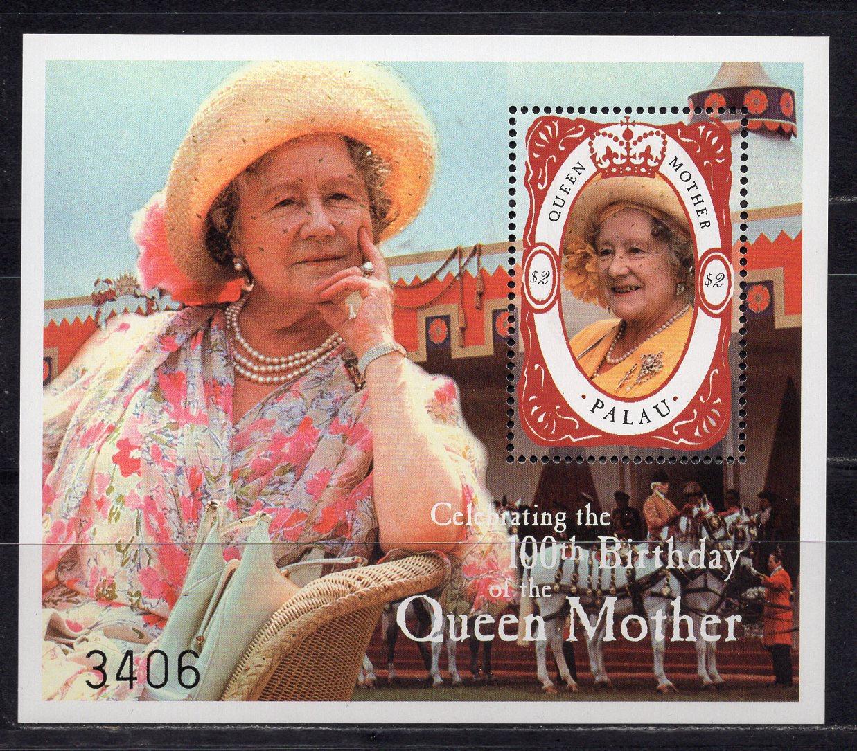 Почтовые марки. Палау, 2000 г. Бл. 127. Королева Елизавета II. Мать.